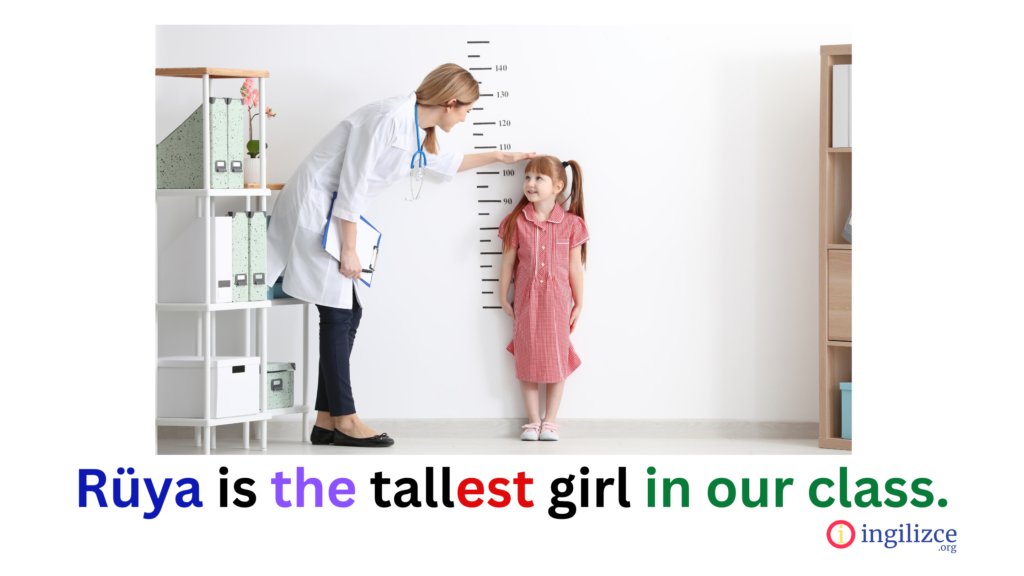 Rüya is the tallest girl in our class./ Rüya sınıfımızın en uzun kızıdır.