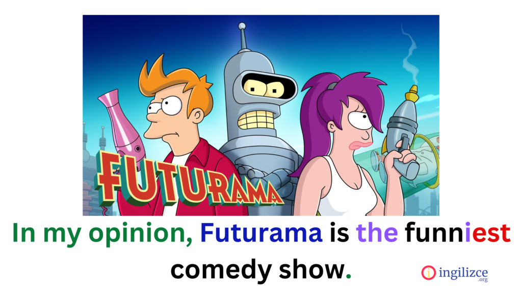 In my opinion, Futurama is the funniest comedy show./ Bana göre Futurama en komik komedi dizisidir.