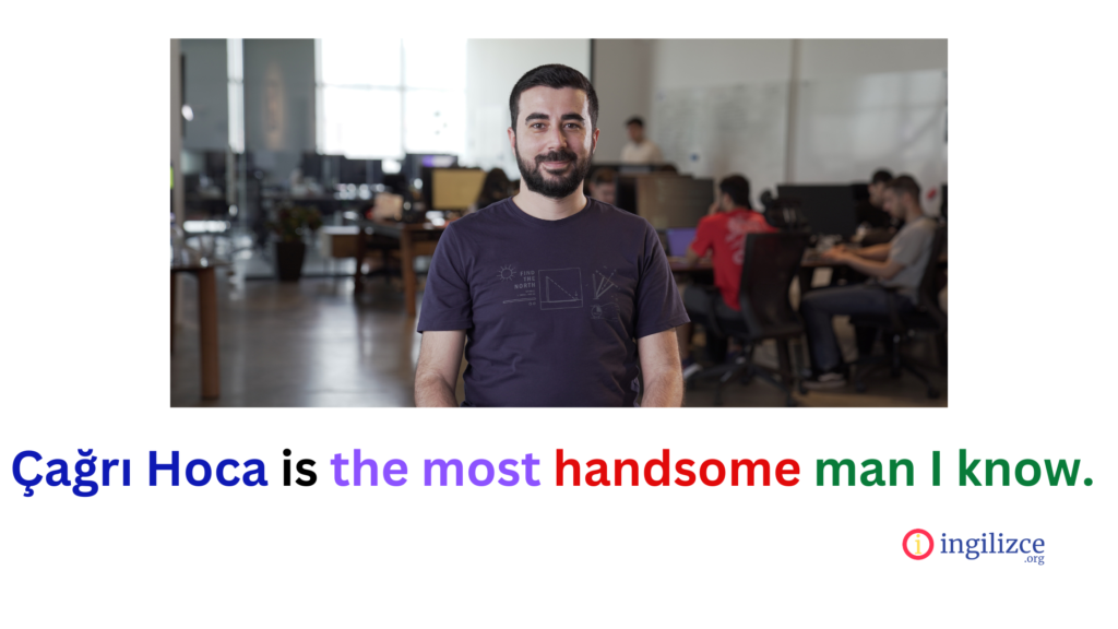 Çağrı Hoca is the most handsome man I know./ Çağrı Hoca tanıdığım en yakışıklı adamdır.