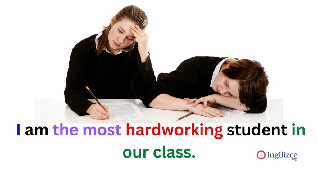 I am the most hardworking student in our class./ Ben sınıfımızın en çalışkan öğrencisiyim.
