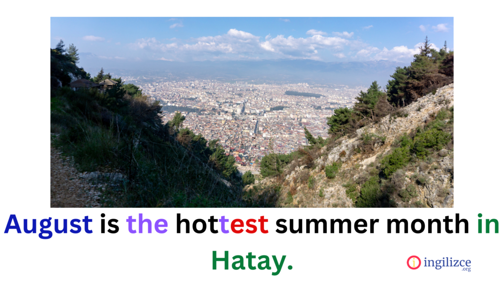 August is the hottest summer month in Hatay./ Ağustos, Hatay’da en sıcak yaz ayıdır.